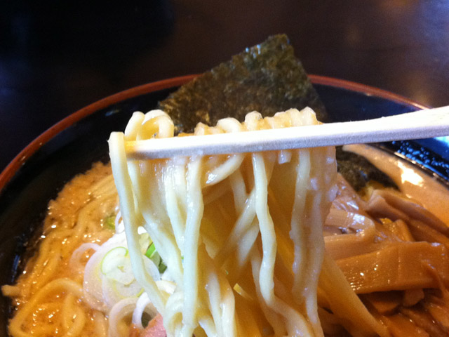 コクのある濃厚なスープに太めの麺がよく絡みます。 一度食べるとクセになる味と評判です。