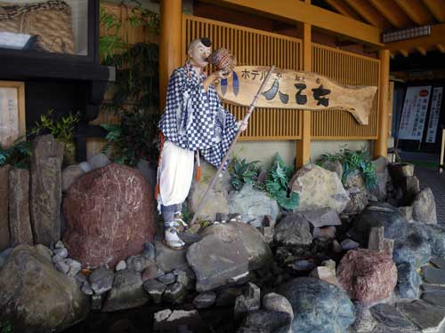 ホテル八乙女の玄関(エントランス)では ホラ貝を持った出羽三山の修験者が出迎えてくれます。