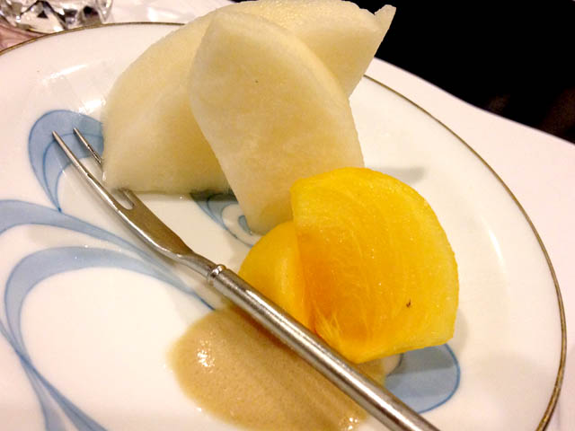 胡麻風味のソースをつけて・・・ 斬新な組み合わせです。